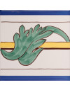 20x20 Bordura mattonella decorata a mano, inseribile come chiusura a rivestimento o pavimento. Verde 140, Giallo 4, Blu 325, abbinabile con il decoro 700.