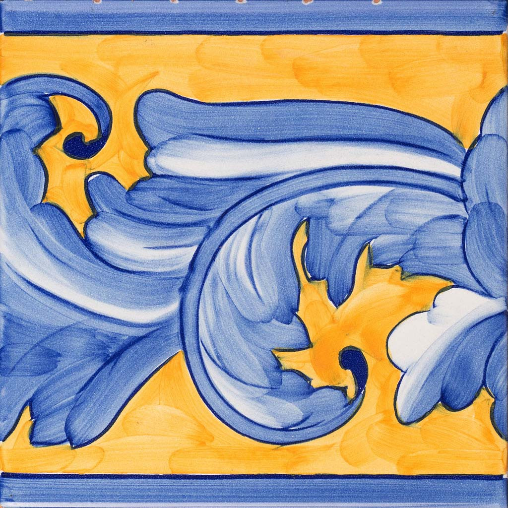 20x20 Bordura mattonella decorata a mano, inseribile come chiusura a rivestimento o pavimento. Realizzabile nei 42 colori in gamma e abbinabile con Pennellati e Bianco Antico.Il colore di riferimento è il blu indaco 315 e il giallo 270. L’arte barocca italiana è nata quasi per un’improvvisa esplosione.