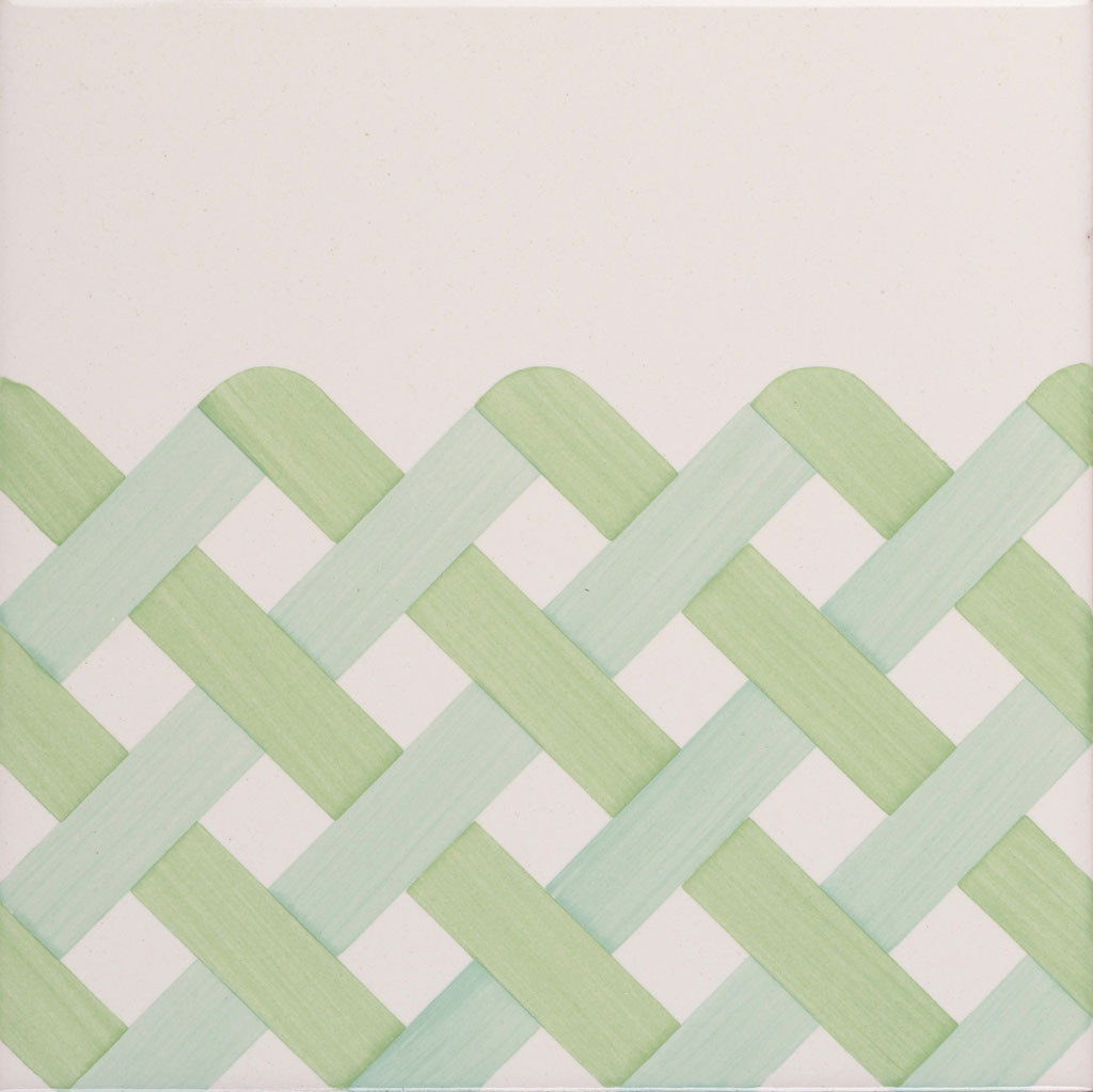 "20x20 Bordura mattonella decorata a mano, inseribile come chiusura a rivestimento o pavimento. Realizzabile nei 42 colori in gamma e abbinabile al decoro Cestino. Il colore di riferimento è il verde 101 e il verde 121. Adeguate rifiniture per i decori abbinati."