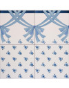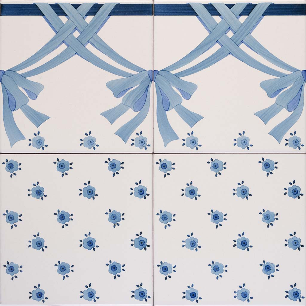 "20x20 Bordura mattonella decorata a mano, inseribile come chiusura a rivestimento o pavimento. Realizzabile nei 42 colori in gamma e abbinabile con Pennellati e Bianco Antico. Il colore di riferimento verde 140. Adeguate rifiniture per i decori abbinati."