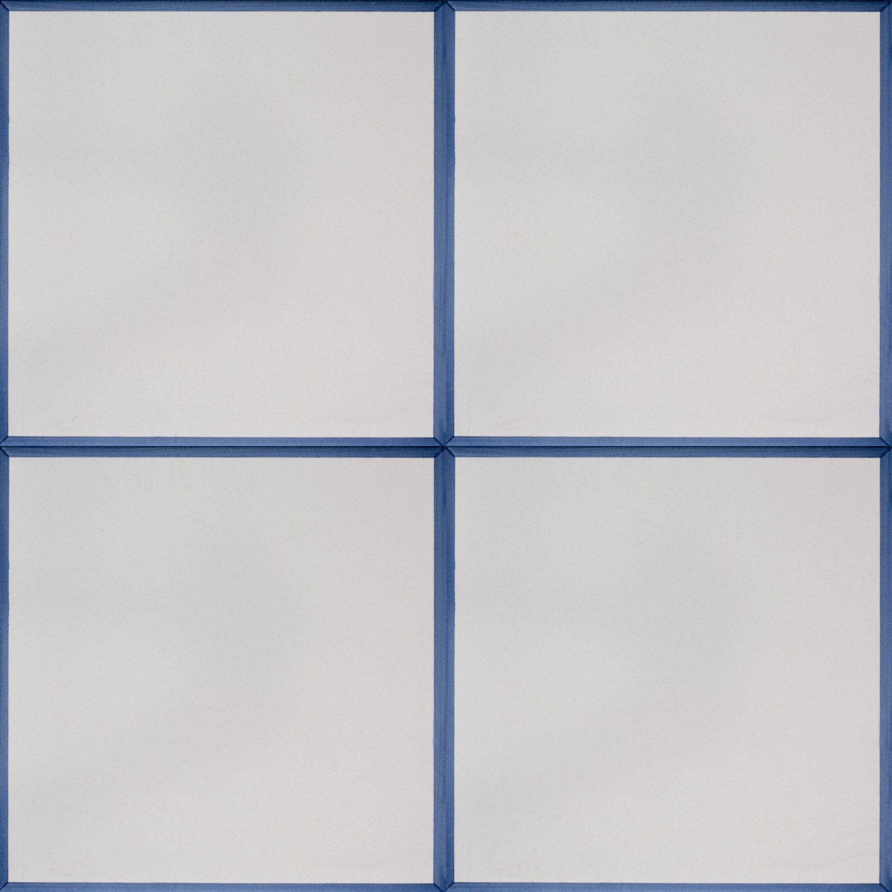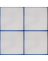 20x20 Mattonella decorata a mano, da posare a pavimento e rivestimento. Realizzabile nei 42 colori in gamma e abbinabile al pennellato e bianco antico. Il colore di riferimento per il decoro è il blu 300.