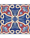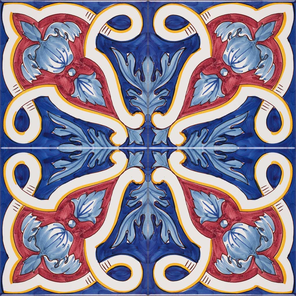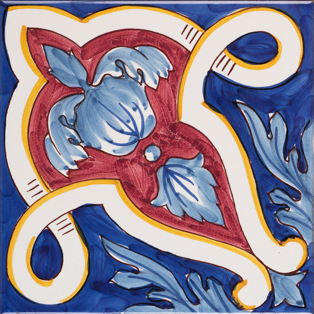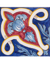 20x20 Mattonella decorata a mano, da posare a pavimento e rivestimento. Realizzabile nei 42 colori in gamma e abbinabile al pennellato e bianco antico. La leggerezza del librarsi in volo. Il colore di riferimento è il blu 325, rosso 7, azzurro 300, giallo 279.