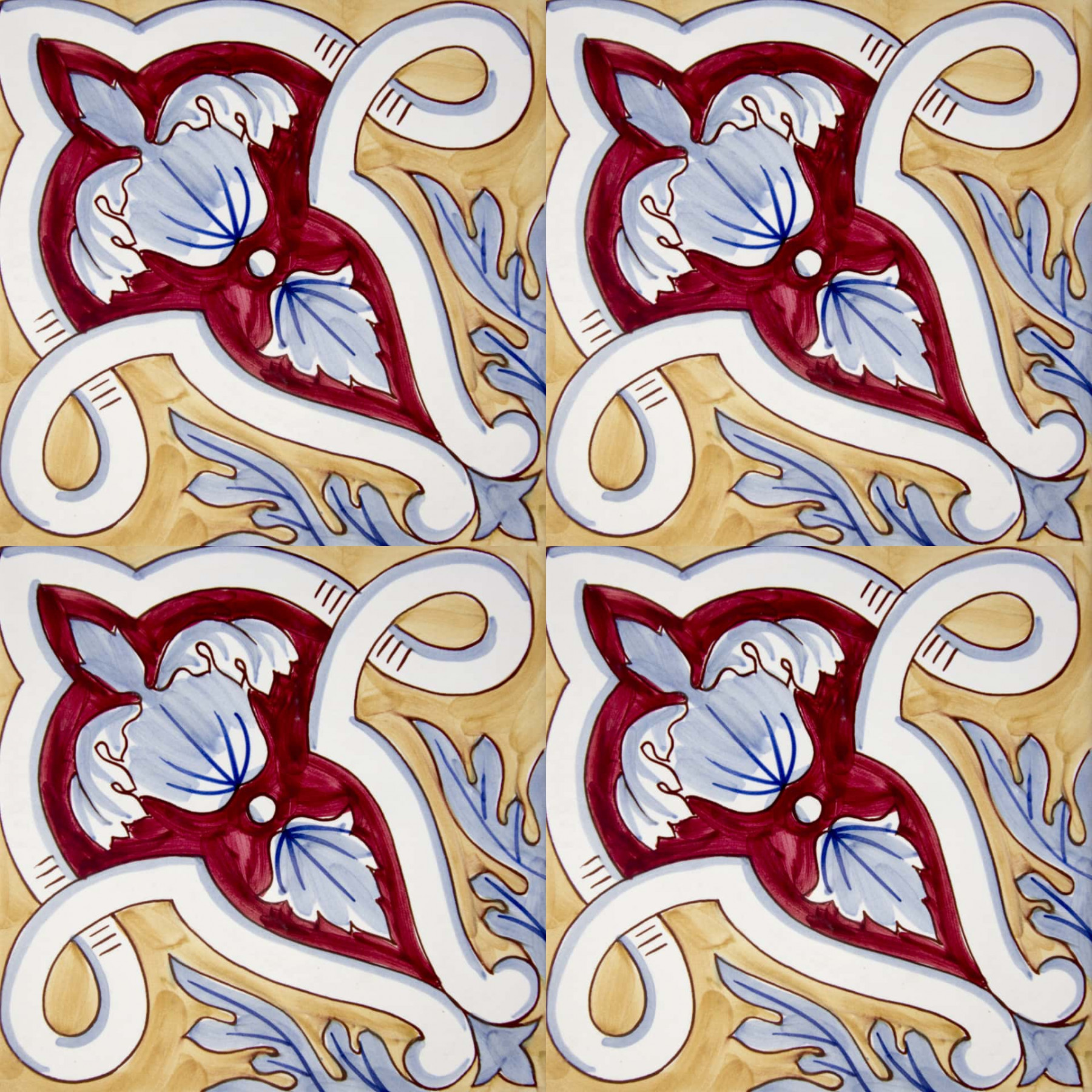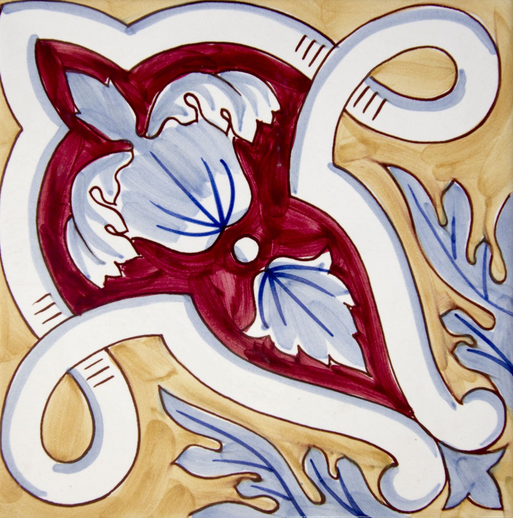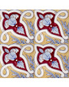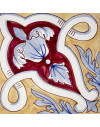20x20 Mattonella decorata a mano, da posare a pavimento e rivestimento. Realizzabile nei 42 colori in gamma e abbinabile al pennellato e bianco antico. La leggerezza del librarsi in volo. Il colore di riferimento è il giallo 809 e il rosso 7.