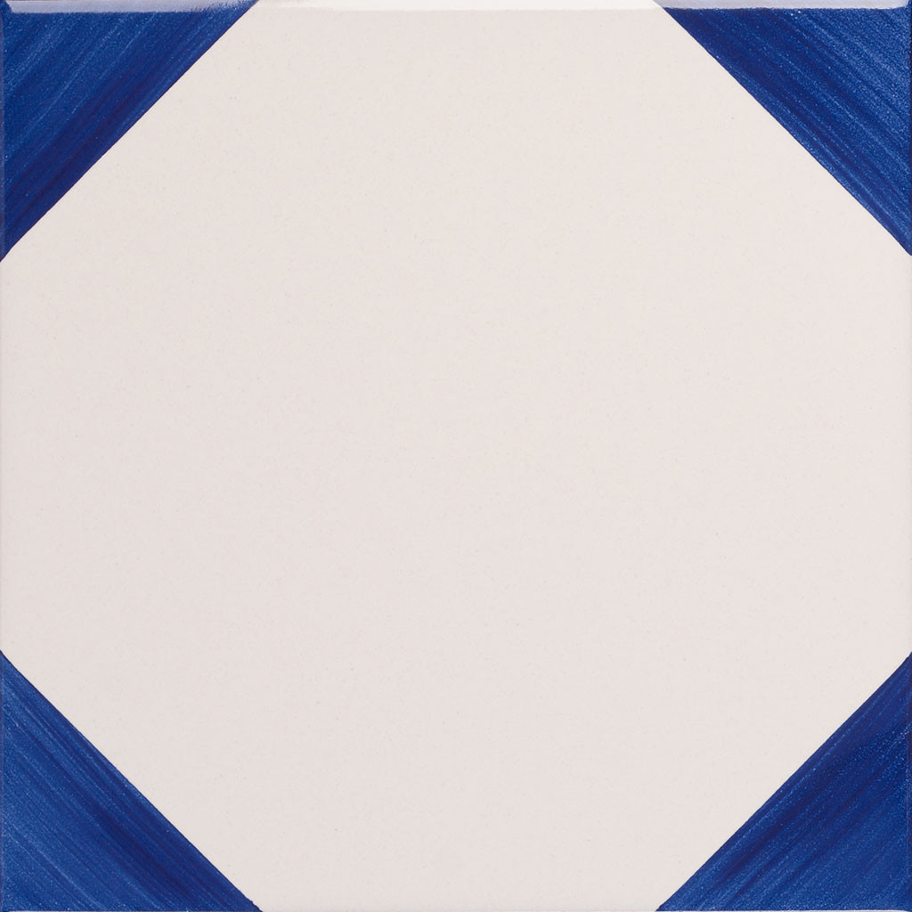 20x20 Mattonella decorata a mano, da posare a pavimento e rivestimento. Realizzabile nei 42 colori in gamma e abbinabile al pennellato e bianco antico. Eleganza e sobrietà per un sangue di nobili natali. Il colore di riferimento è il blu 325.