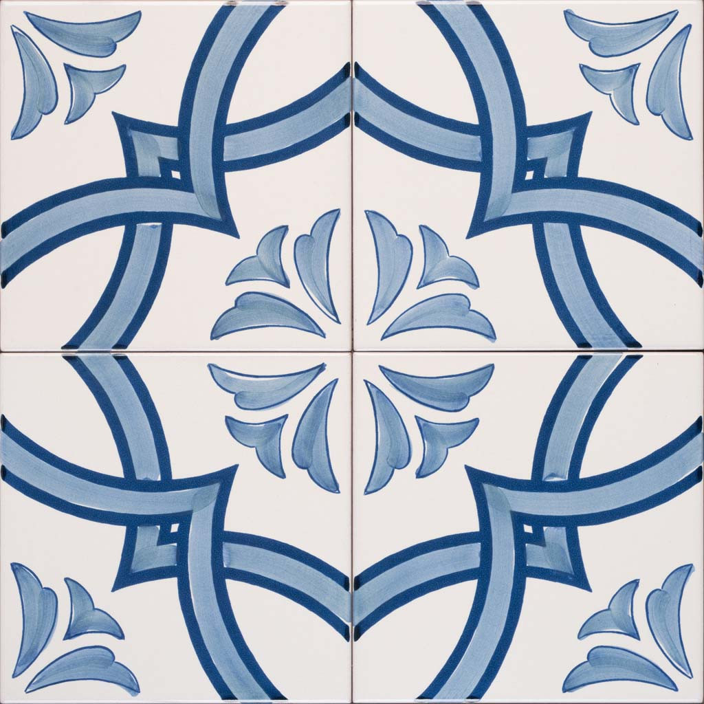 20x20 Mattonella decorata a mano, da posare a pavimento e rivestimento. Realizzabile nei 42 colori in gamma e abbinabile al pennellato e bianco antico. La vera bellezza sta nel rispetto delle proporzioni, in cui i Greci vedevano la corretta raffigurazione dell’ordine della Natura. Il colore di riferimento blu 451, azzurro 300.