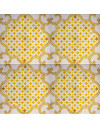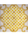20x20 Mattonella decorata a mano, da posare a pavimento e rivestimento. Realizzabile nei 42 colori in gamma e abbinabile al pennellato e bianco antico. Il colore di riferimento è il giallo 279 su fondo bianco.