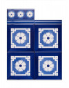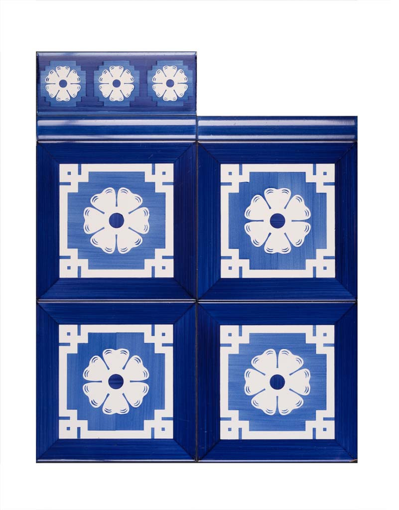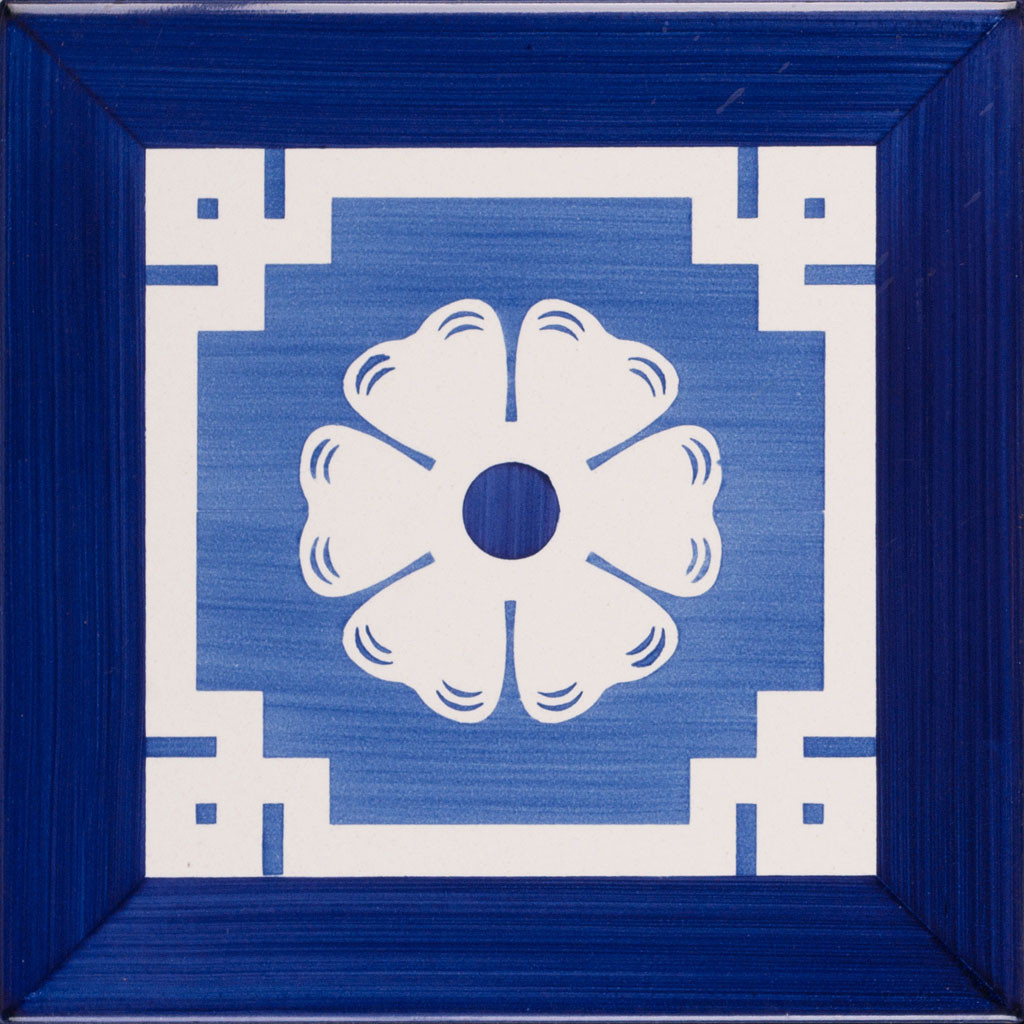 20x20 Mattonella decorata a mano, da posare a pavimento e rivestimento. Realizzabile nei 42 colori in gamma e abbinabile al pennellato e bianco antico. Ispirato alla bellezza di Giulia Farnese. Il colore di riferimento è il blu 325.
