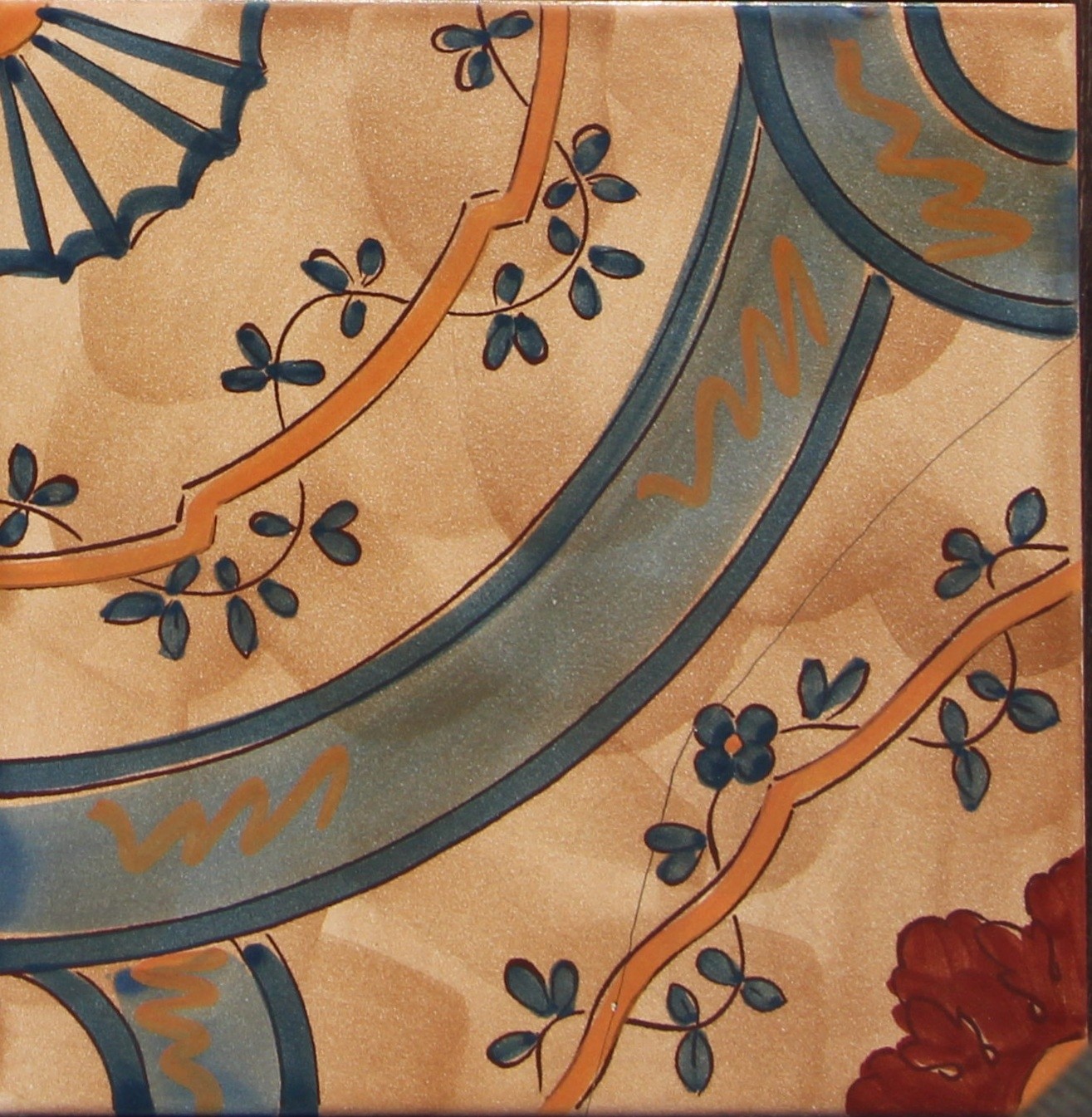 20x20 Mattonella decorata a mano, da posare a pavimento e rivestimento. Realizzabile nei 42 colori in gamma e abbinabile al pennellato e bianco antico. Libertè, egalitè, fraternitè.