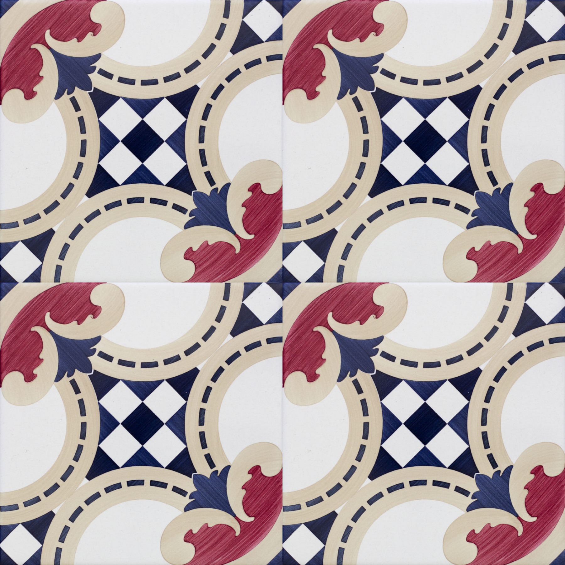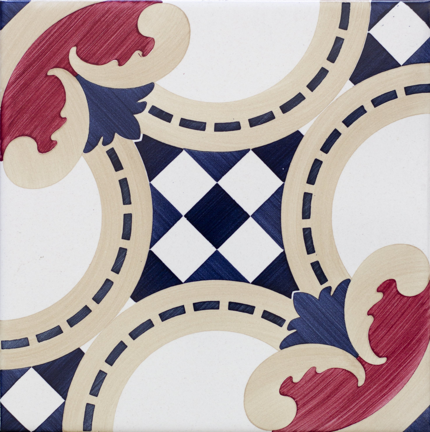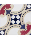 20x20 Mattonella decorata a mano, da posare a pavimento e rivestimento. Realizzabile nei 42 colori in gamma e abbinabile al pennellato e bianco antico Nel dare mia sorella Margot a Enrico di Navarra, io do il mio cuore a tutti i protestanti del regno.Il colore di riferimento è il l'avana 378 e il blu 451.