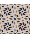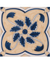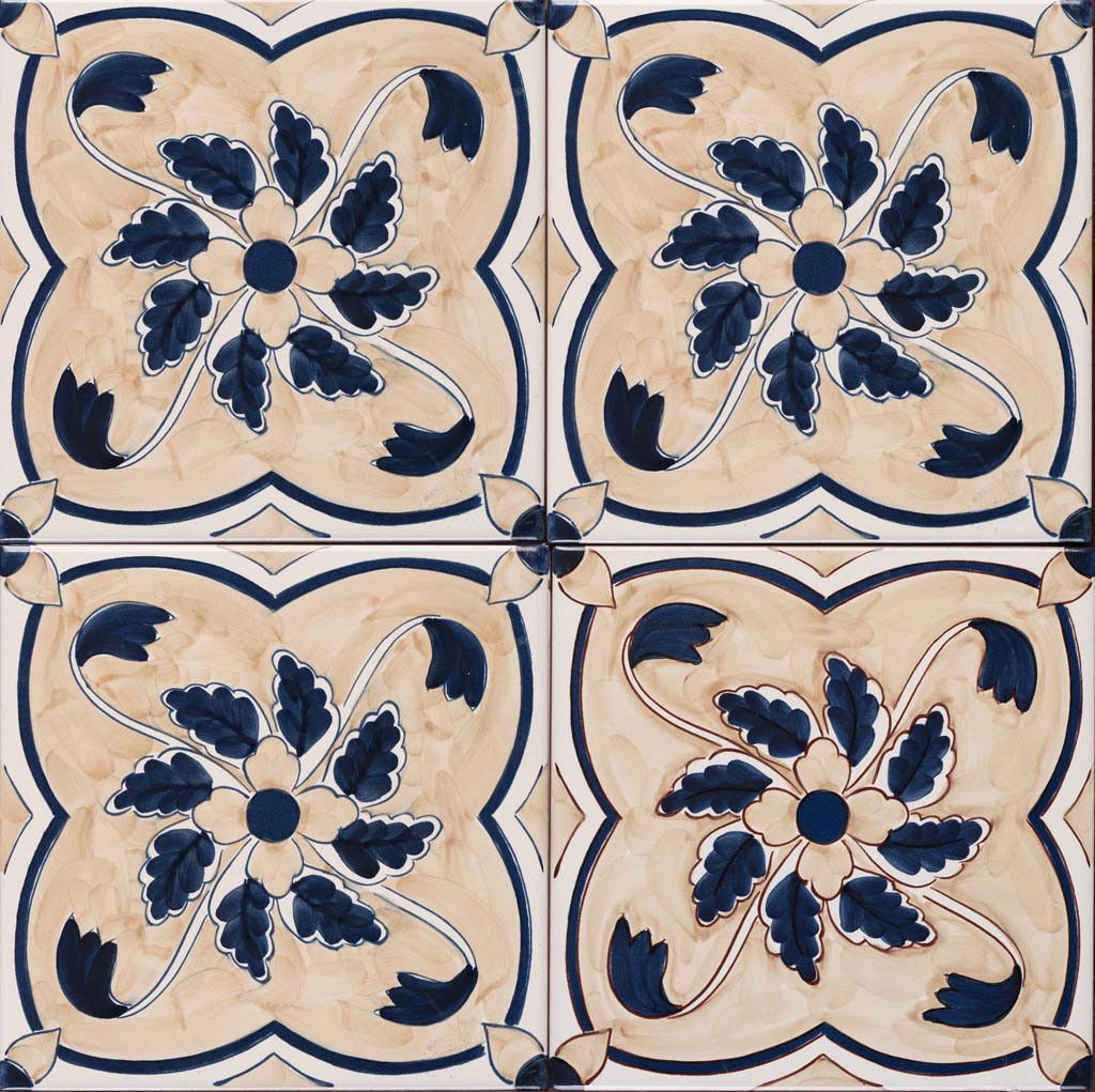 20x20 Mattonella decorata a mano, da posare a pavimento e rivestimento. Realizzabile nei 42 colori in gamma e abbinabile al pennellato e bianco antico. Chi ha visto una volta il cielo di Palermo non potrà mai più dimenticarlo. Il colore di riferimento è il blu 451, beige 378.