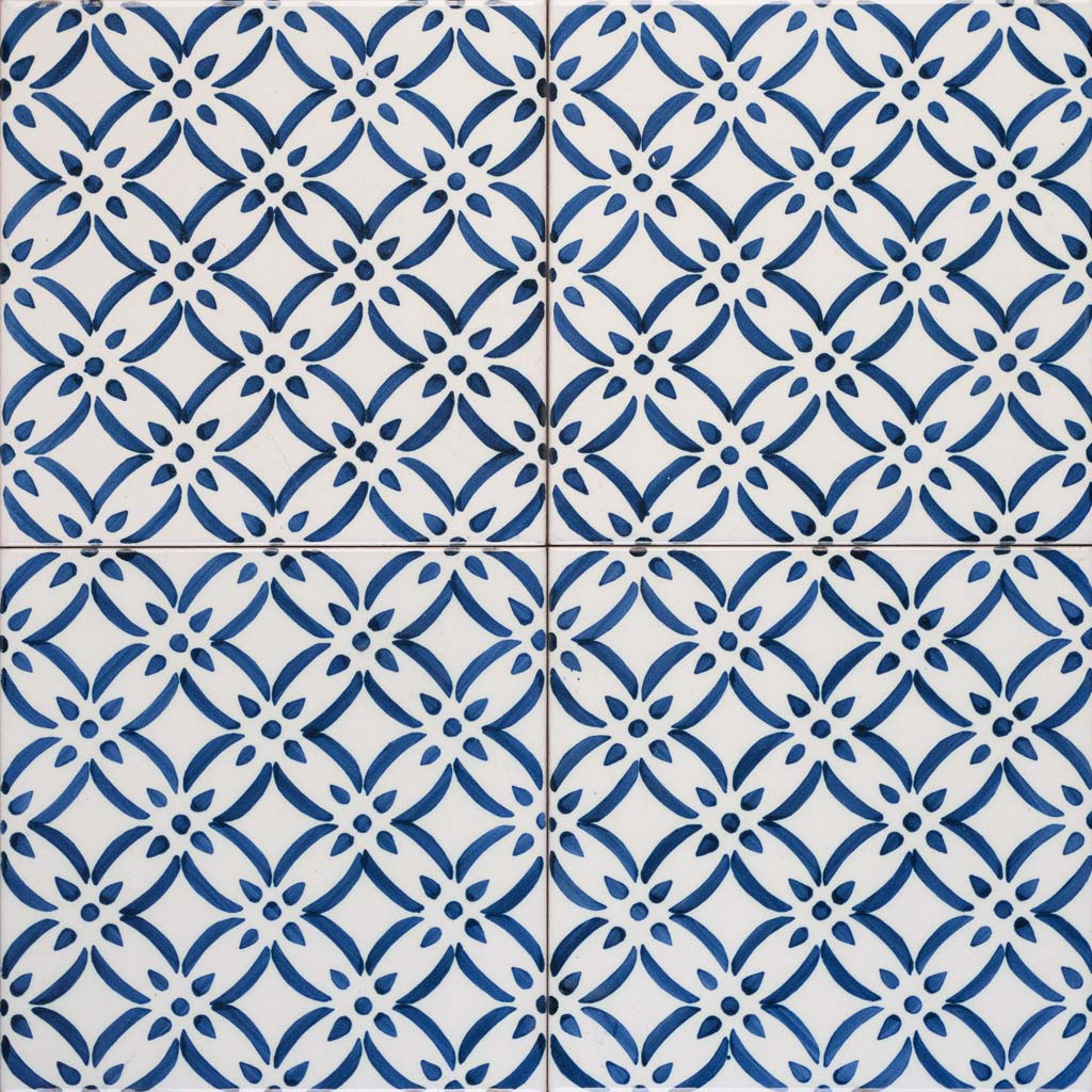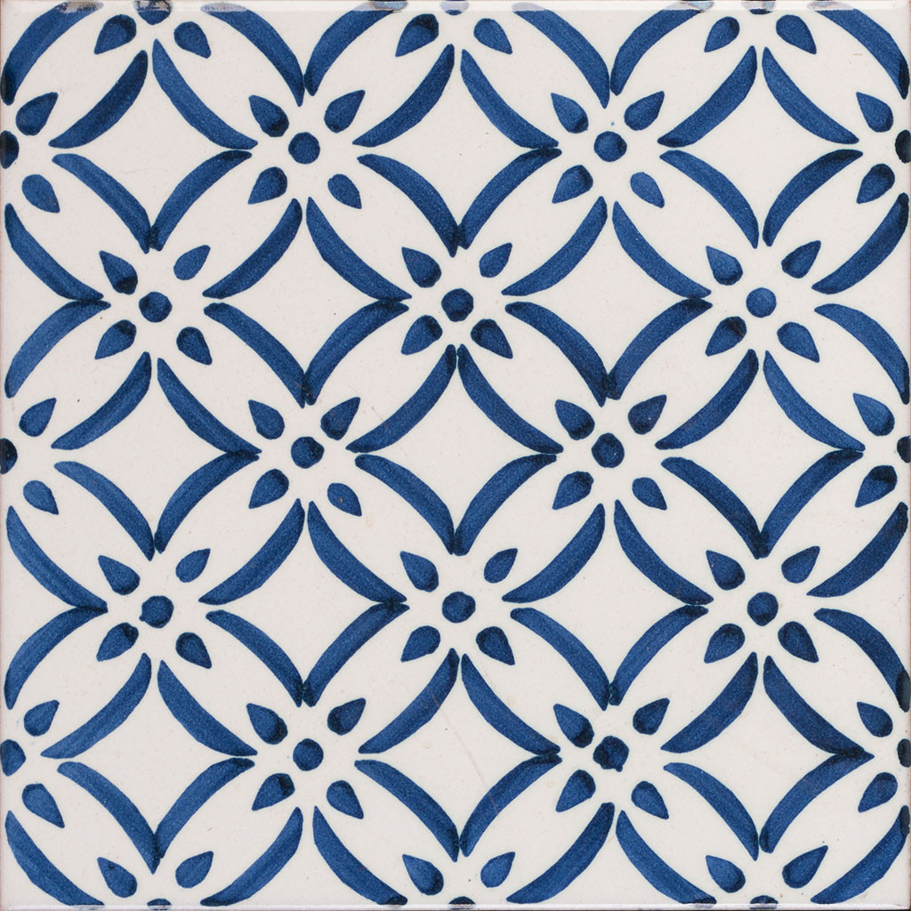 20x20 Mattonella decorata a mano, da posare a pavimento e rivestimento. Realizzabile nei 42 colori in gamma e abbinabile al pennellato e bianco antico. Più grande è l’isola della conoscenza, più lungo è il litorale della meraviglia. Il colore di riferimento è il blu 451.