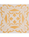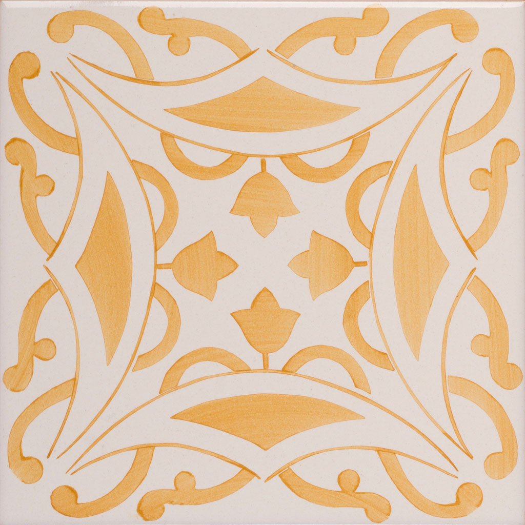 20x20 Mattonella decorata a mano, da posare a pavimento e rivestimento. Realizzabile nei 42 colori in gamma e abbinabile al pennellato e bianco antico. Dolce vita all’aroma di malvasia. Il colore di riferimento è il giallo 809.