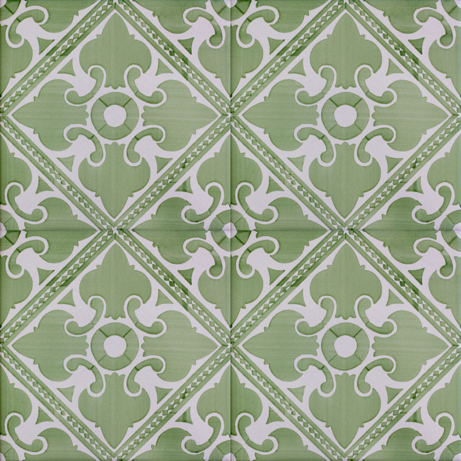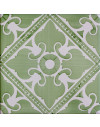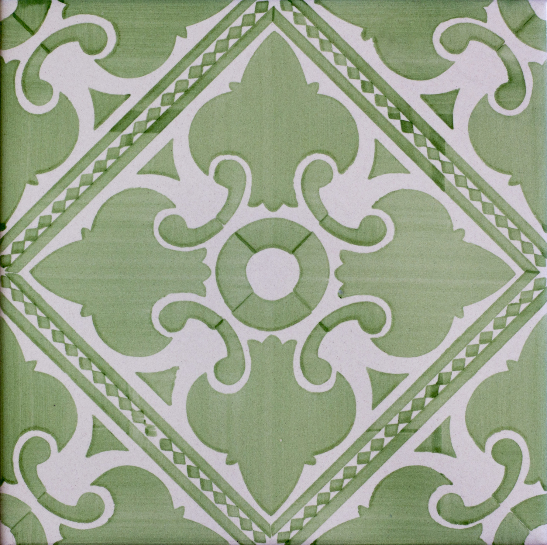 20x20 Mattonella decorata a mano, da posare a pavimento e rivestimento. Realizzabile nei 42 colori in gamma e abbinabile al pennellato e bianco antico. Il paradiso della Val d’Orcia. Il colore di riferimento è il verde 101.