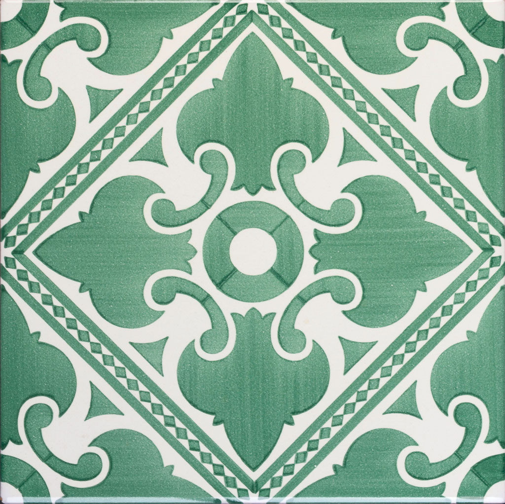 20x20 Mattonella decorata a mano, da posare a pavimento e rivestimento. Realizzabile nei 42 colori in gamma e abbinabile al pennellato e bianco antico. Il paradiso della Val d’Orcia. Il colore di riferimento verde 140.