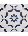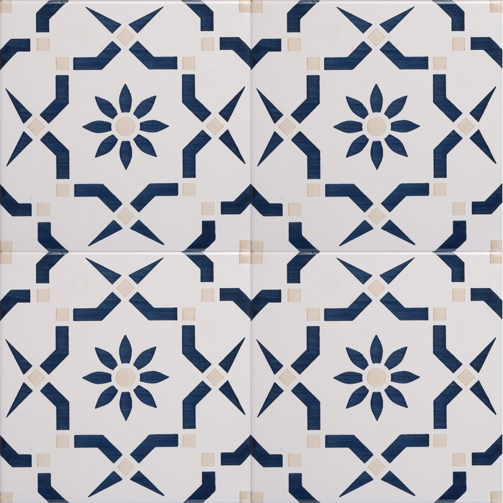 20x20 Mattonella decorata a mano, da posare a pavimento e rivestimento. Realizzabile nei 42 colori in gamma e abbinabile al pennellato e bianco antico. Ritrosa, diffidente e mai prevedibile. Il colore di riferimento è il blu 451, beige 378.