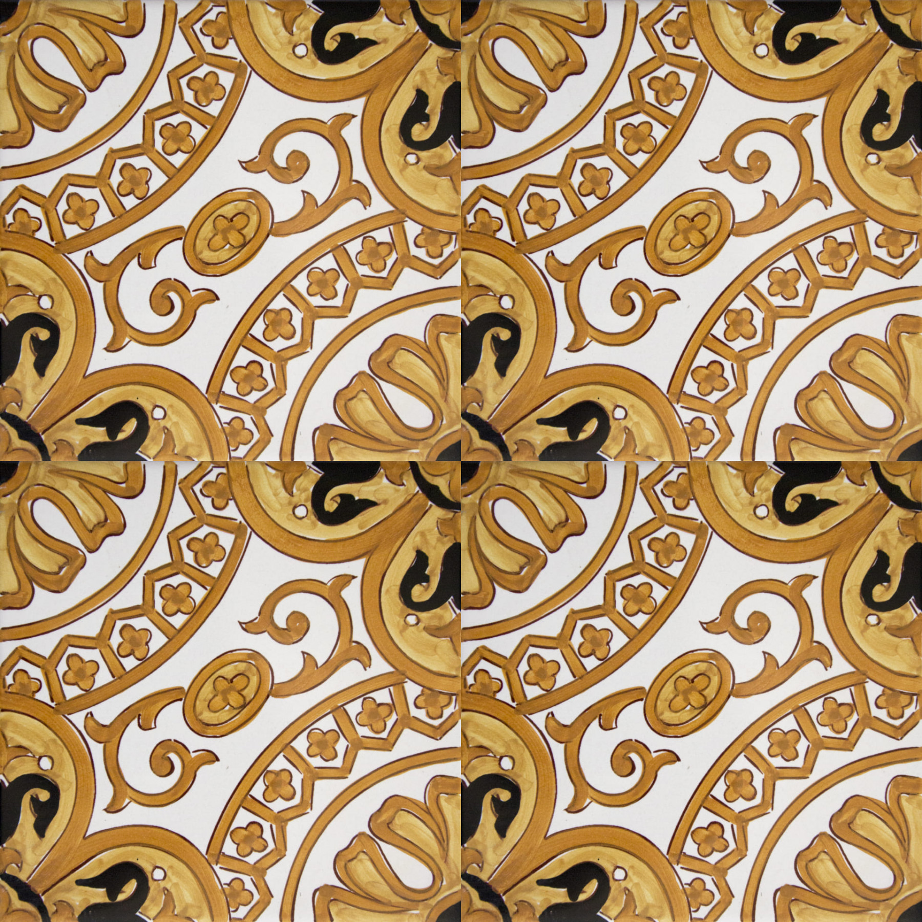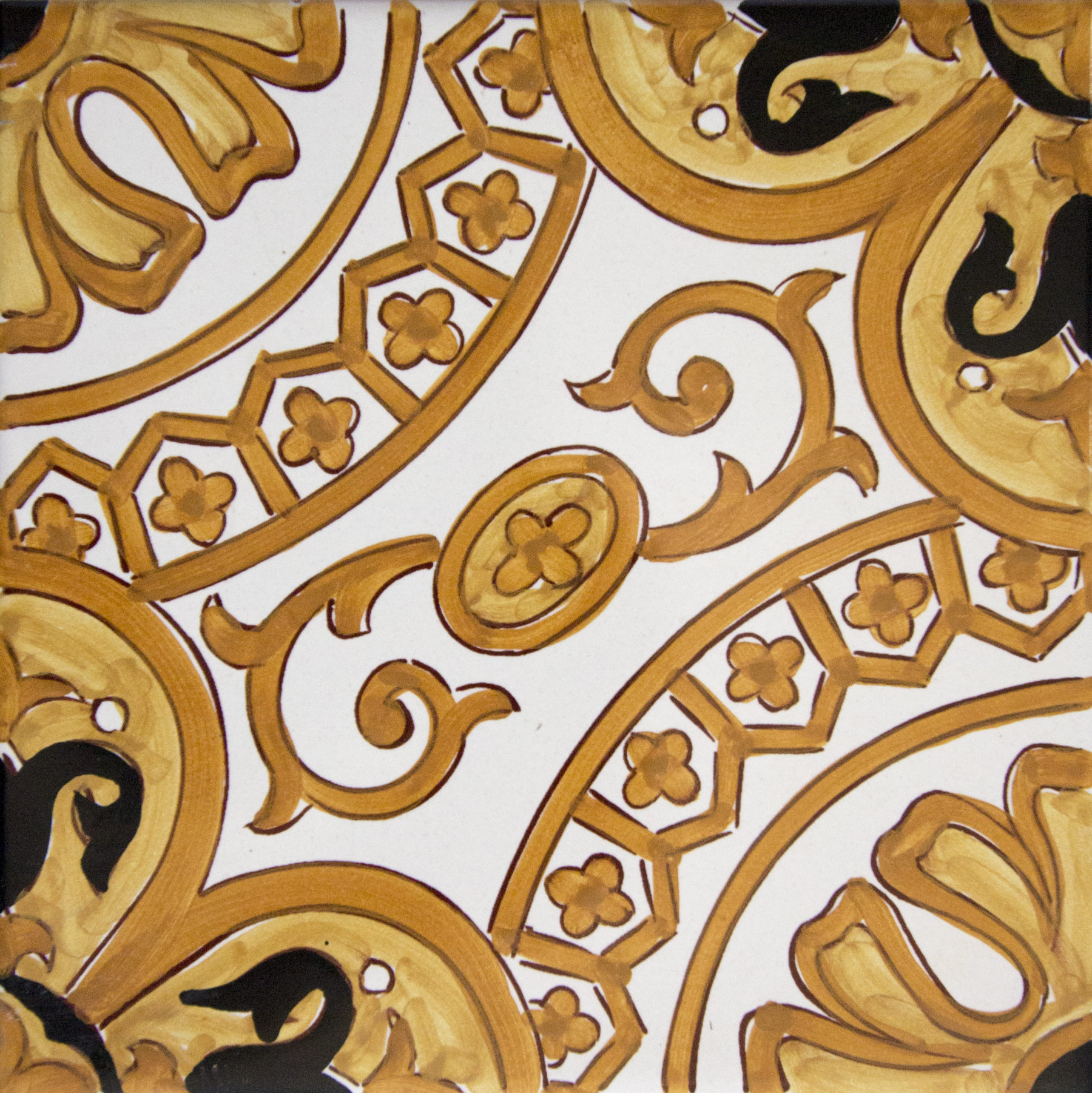 20x20 Mattonella decorata a mano, da posare a pavimento e rivestimento. Realizzabile nei 42 colori in gamma e abbinabile al pennellato e bianco antico. Ritrosa, diffidente e mai prevedibile. Il colore di riferimento è il giallo 270.