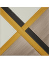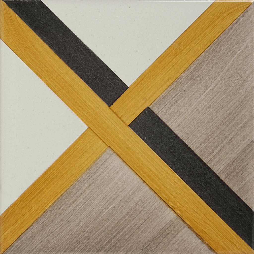 20x20 Mattonella decorata a mano, da posare a pavimento e rivestimento. Realizzabile nei 42 colori in gamma e abbinabile al pennellato e bianco antico. Il colore di riferimento è il manganese 996, giallo 270, nero lavagna 100.