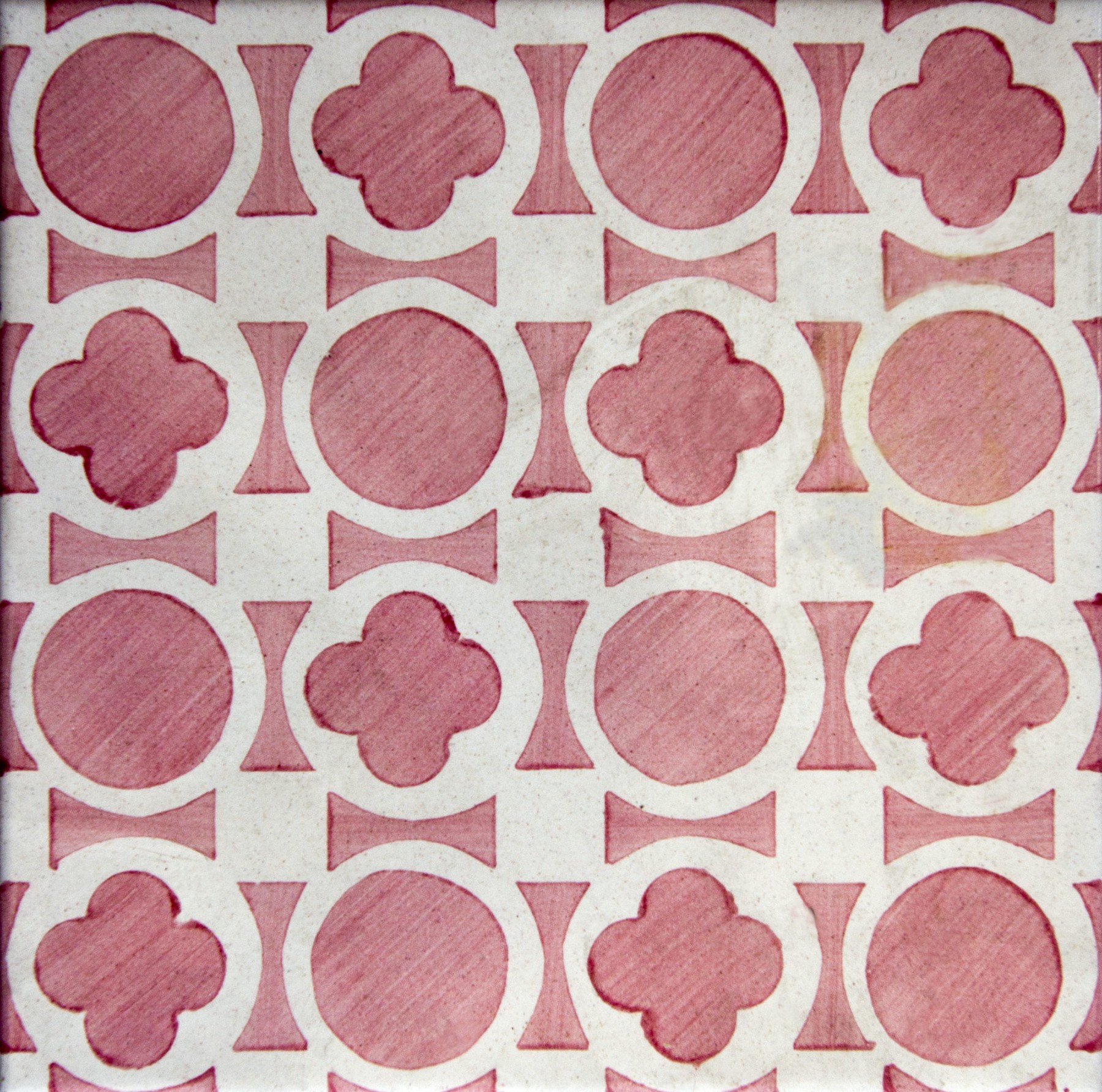 20x20 Mattonella decorata a mano, da posare a pavimento e rivestimento. Realizzabile nei 42 colori in gamma e abbinabile al pennellato e bianco antico. Il colore di riferimento è il rosa 357.