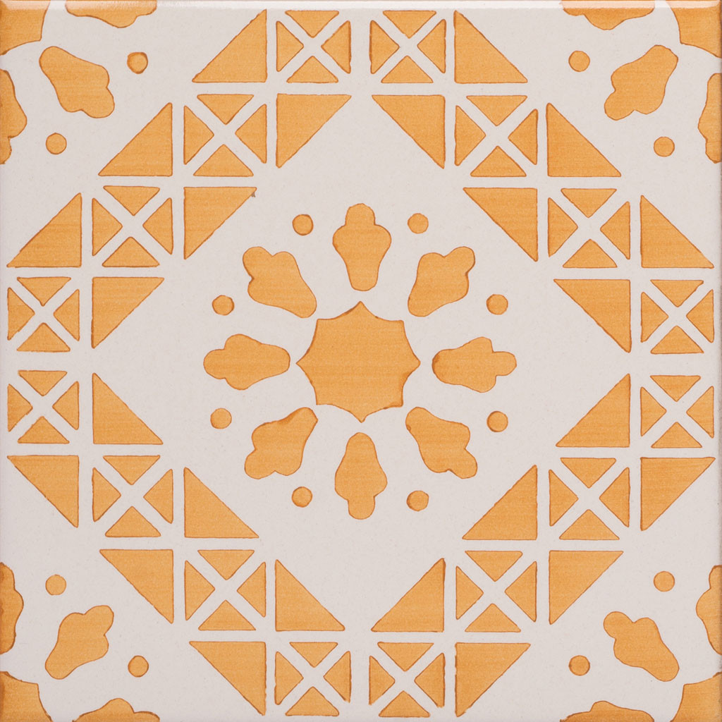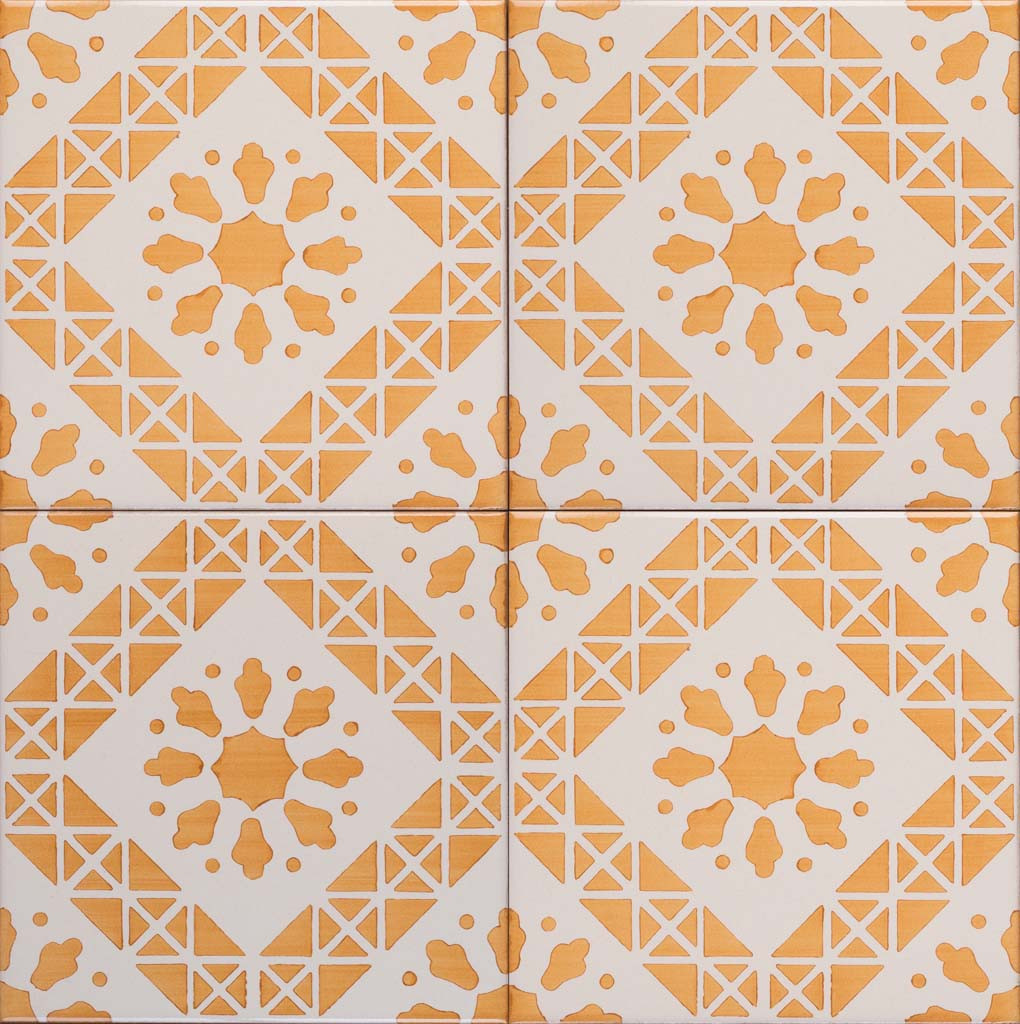20x20 Mattonella decorata a mano, da posare a pavimento e rivestimento. Realizzabile nei 42 colori in gamma e abbinabile al pennellato e bianco antico. L’entusiasmo è un vulcano sul cui cratere non cresce mai l’erba della esitazione. Il colore di riferimento è il giallo 279.