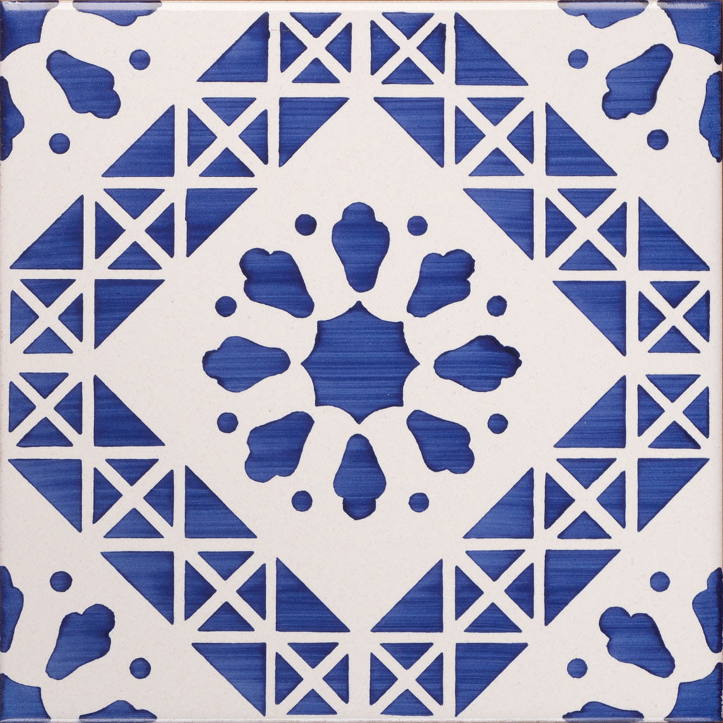 20x20 Mattonella decorata a mano, da posare a pavimento e rivestimento. Realizzabile nei 42 colori in gamma e abbinabile al pennellato e bianco antico. L’entusiasmo è un vulcano sul cui cratere non cresce mai l’erba della esitazione. Il colore di riferimento è il blu 325.