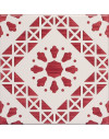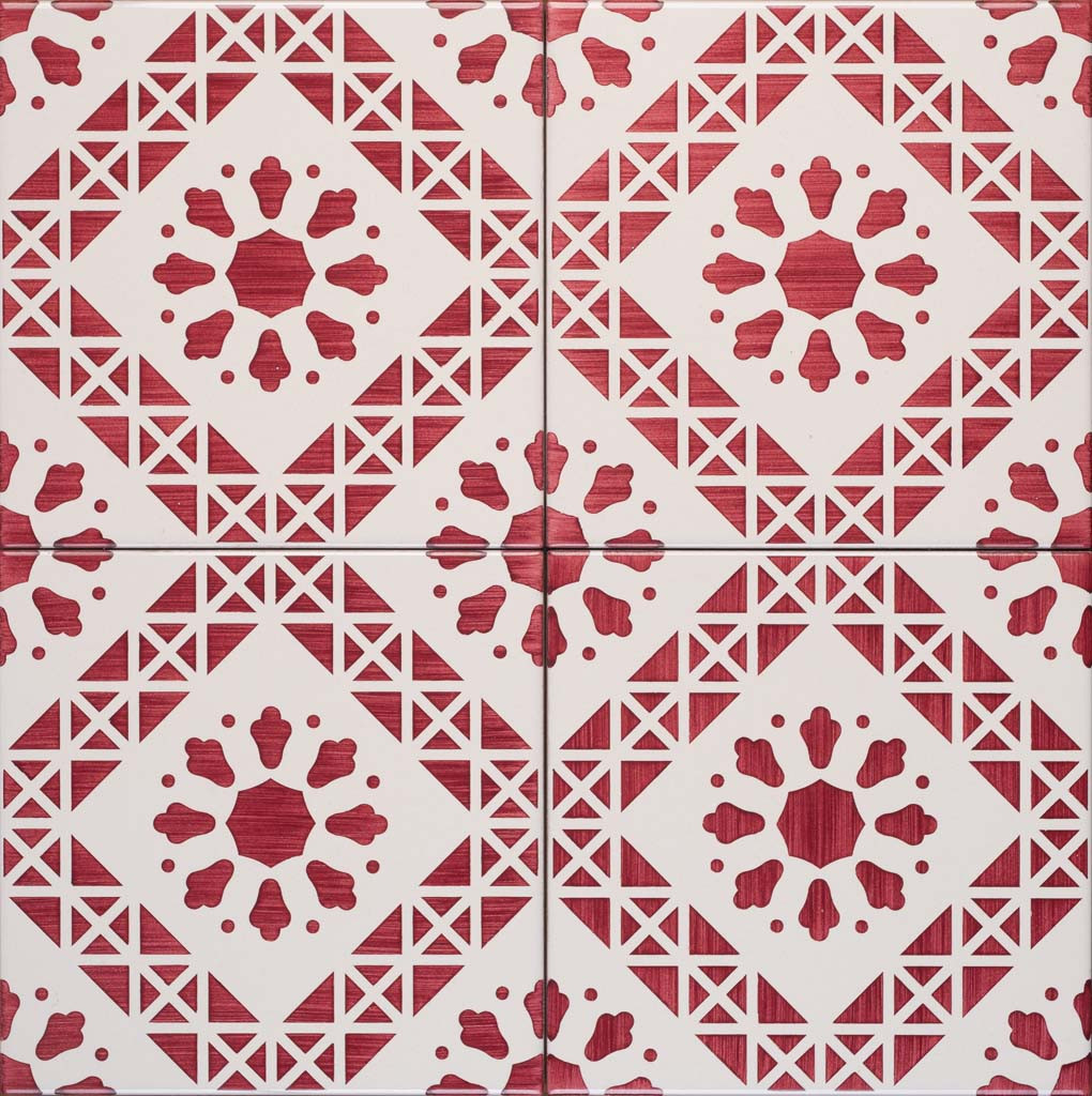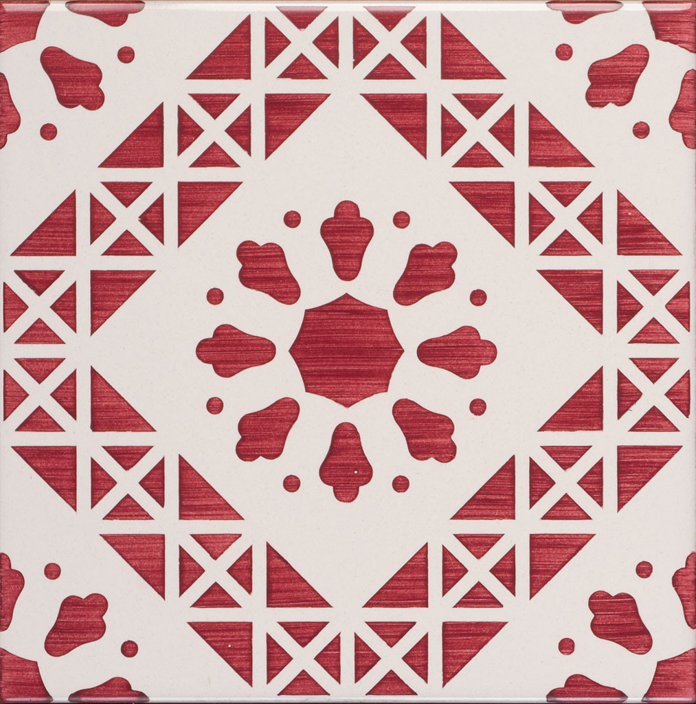 20x20 Mattonella decorata a mano, da posare a pavimento e rivestimento. Realizzabile nei 42 colori in gamma e abbinabile al pennellato e bianco antico. L’entusiasmo è un vulcano sul cui cratere non cresce mai l’erba della esitazione. Il colore di riferimento è il rosso 7.