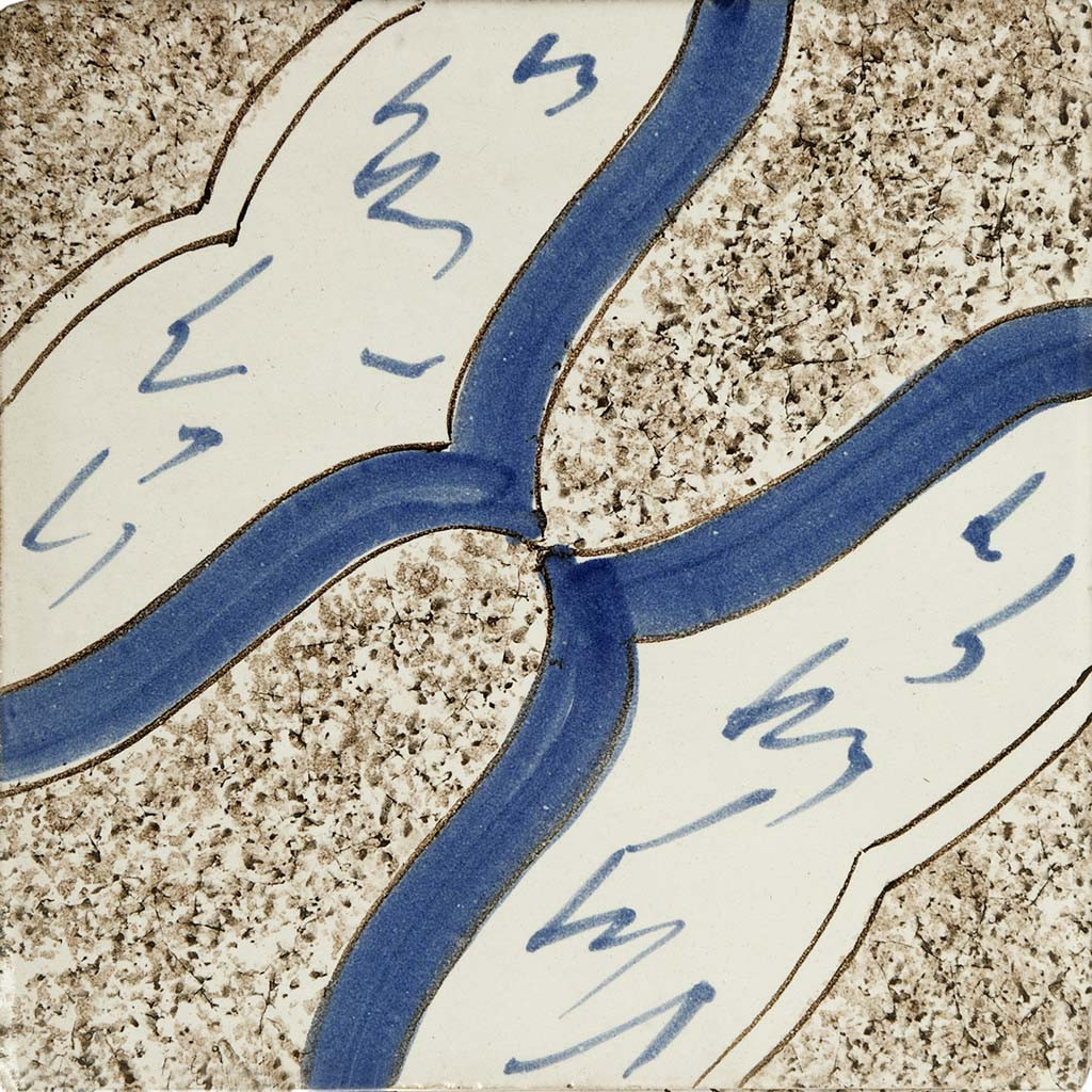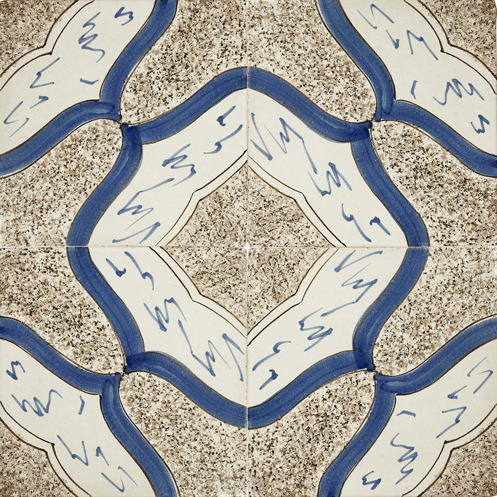 20x20 Mattonella decorata a mano, da posare a pavimento e rivestimento. Realizzabile nei 42 colori in gamma e abbinabile al pennellato e bianco antico. I napoletani cavano l’arte dal sole. Il colore di riferimento è il blu indaco 315, manganese 996.