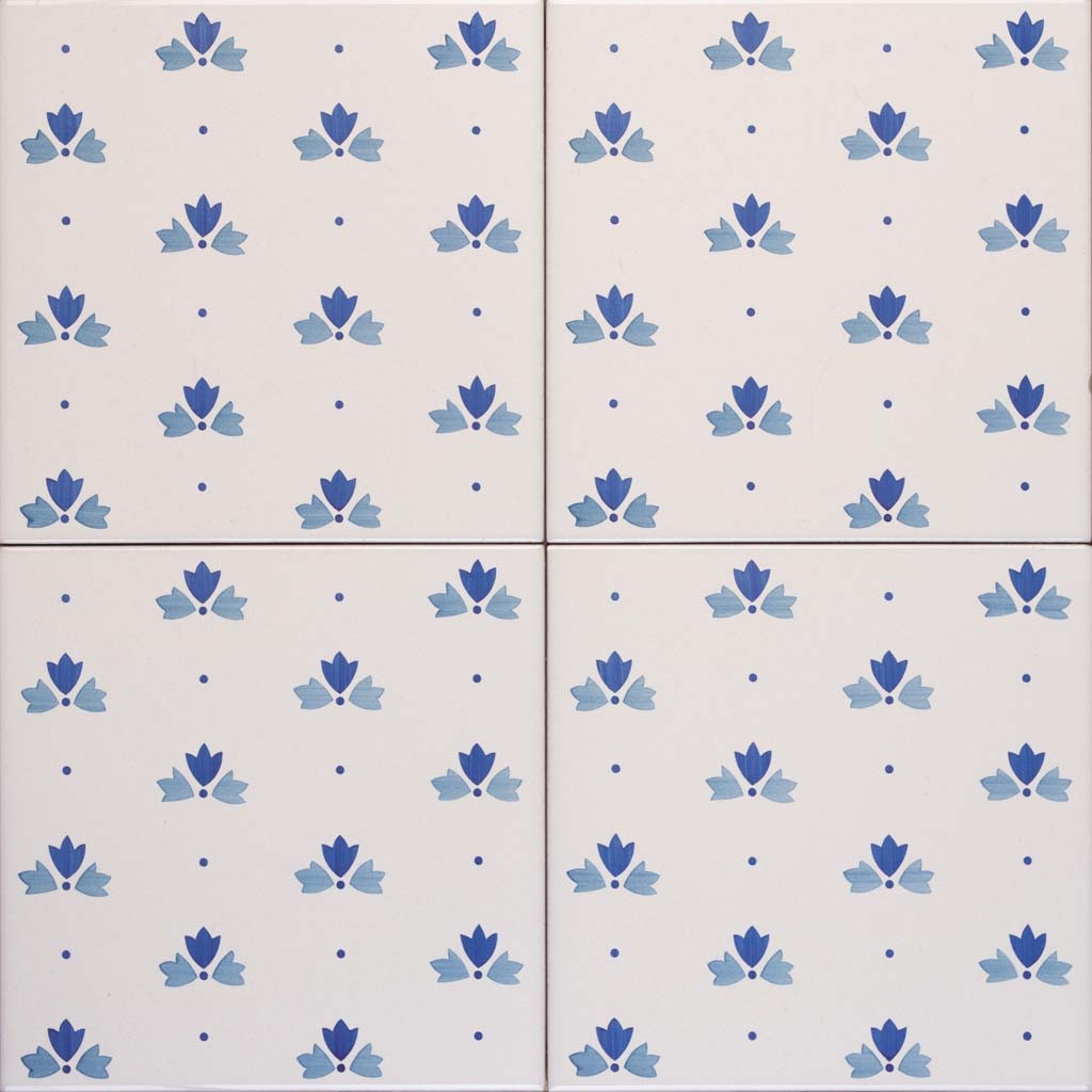 "20x20 Mattonella decorata a mano, da posare a pavimento e rivestimento. Realizzabile nei 42 colori in gamma e abbinabile al pennellato e bianco antico. Vorrei in questo momento avere il coraggio del bucaneve... aprire la bianca corolla tra spessa neve sfidando il vento gelido cullandomi nel sogno di un raggio di sole. Il colore di riferimento è il blu indaco 315, azzurro 300."