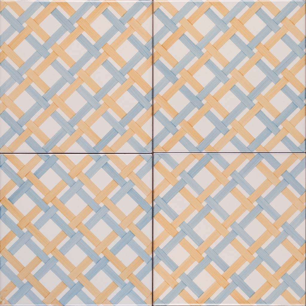 20x20 Mattonella decorata a mano, da posare a pavimento e rivestimento. Realizzabile nei 42 colori in gamma e abbinabile al pennellato e bianco antico.