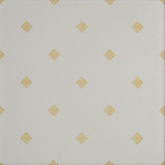 20x20 Mattonella decorata a mano, da posare a pavimento e rivestimento. Realizzabile nei 42 colori in gamma e abbinabile al pennellato e bianco antico. Colore di riferimento 809.