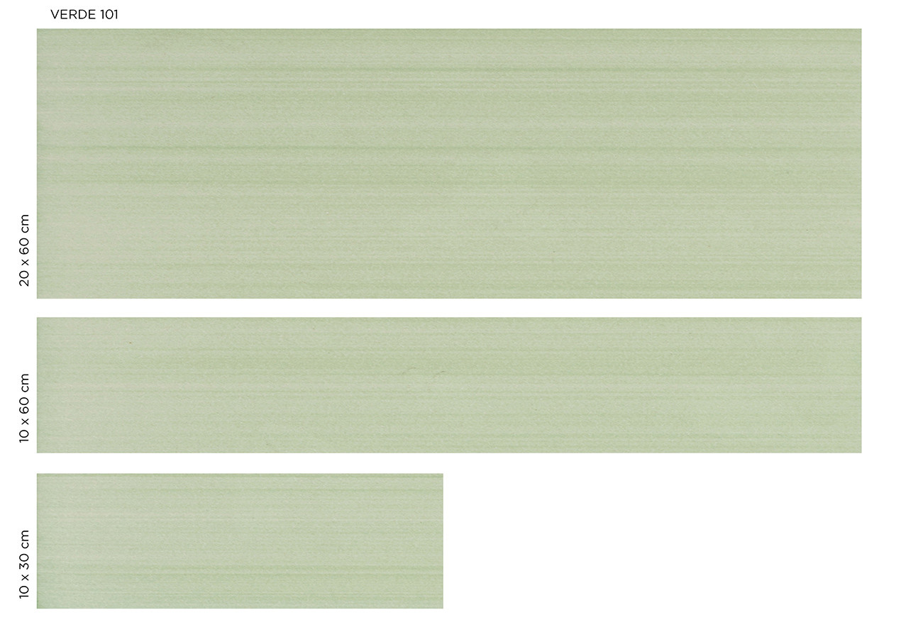 20x20 Pennellato lungo tinta unita, mattonella da pavimento e rivestimento. Il colore di riferimento è il verde 101, abbinabile al Bianco Antico e decorati.
