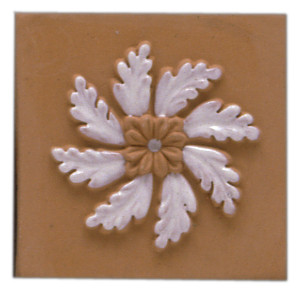 5x5 Tozzetto in rilievo inserito nel Bianco Antico tagliato un lato, posato a rivestimento. Il colore di riferimento è il bianco antico.