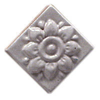 5x5 Tozzetto in rilievo inserito nel Bianco Antico tagliato un lato, posato a rivestimento. Il colore di riferimento è il bianco p.c.