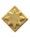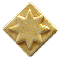 5x5 Tozzetto in rilievo inserito nel Bianco Antico tagliato un lato, posato a rivestimento. Il colore di riferimento è il giallo 279.