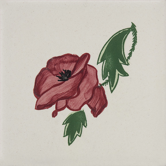 5x5 Tozzetto decorato a mano, inserito nel Bianco Antico o pennellato tagliato un lato, utilizzato sia a pavimento e rivestimento. Il colore di riferimento è il 631 verde, rosso 7.